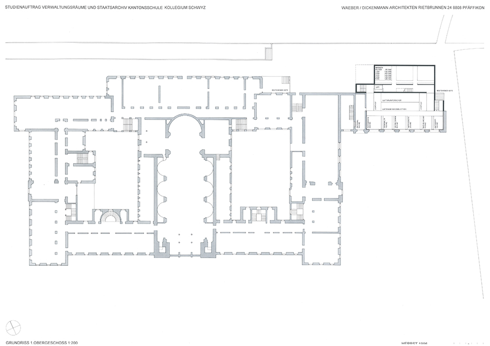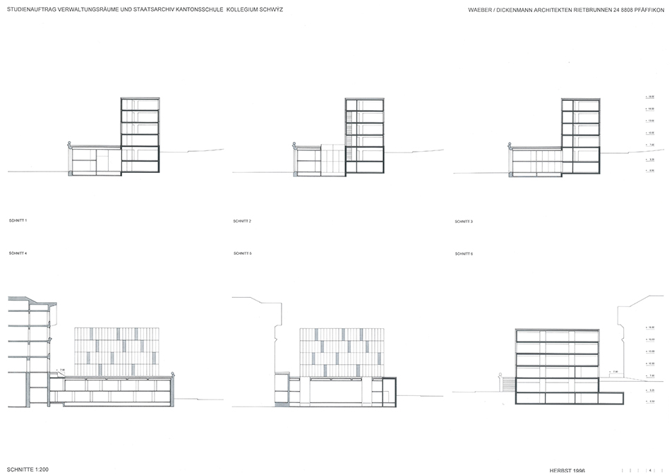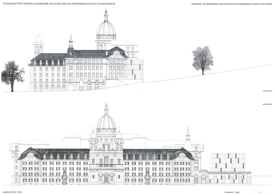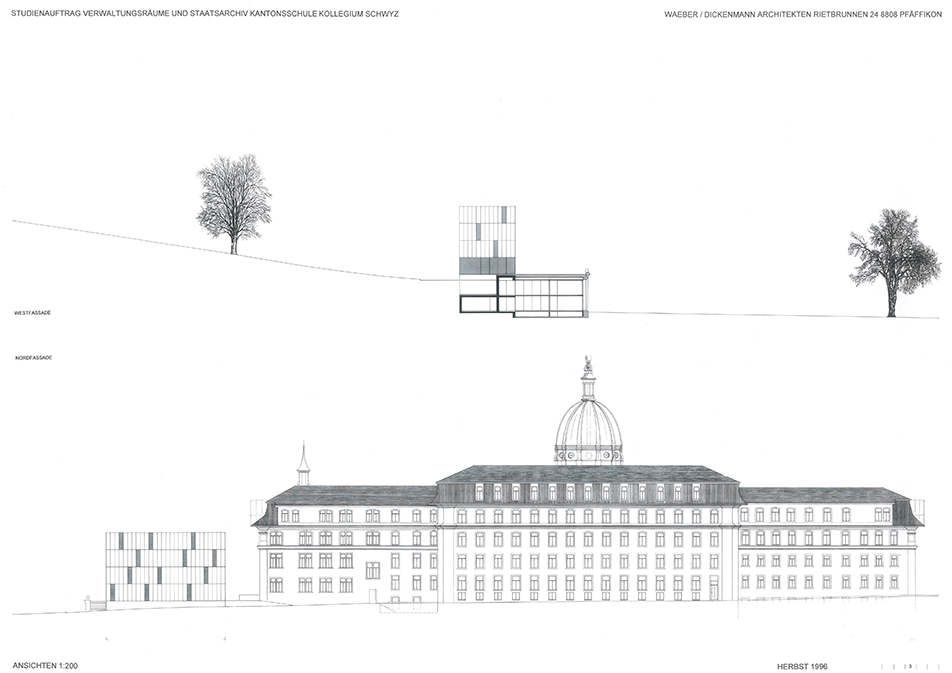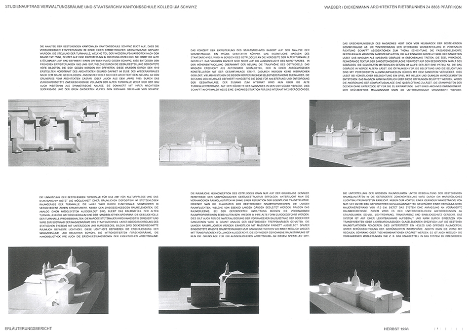 Auslober Kanton SchwyzErweiterung und Umnutzung für VerwaltungszweckeJahr 1996Studienauftrag in Konkurrenz1. Rang
