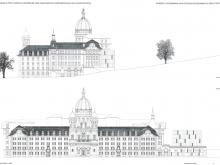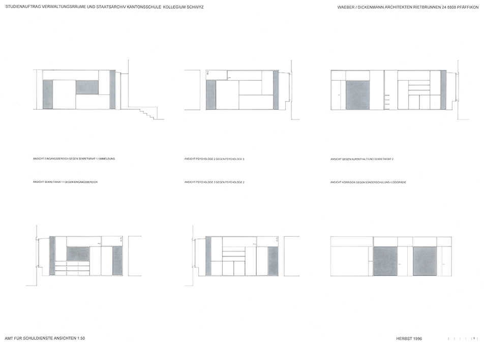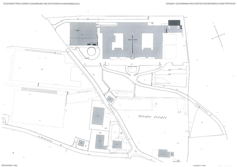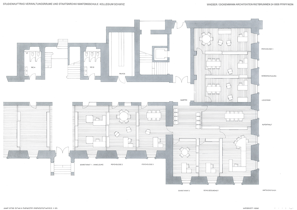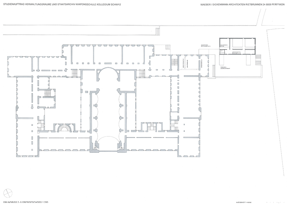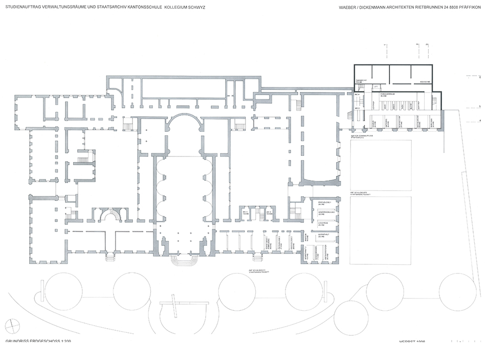 Auslober Kanton SchwyzErweiterung und Umnutzung für VerwaltungszweckeJahr 1996Studienauftrag in Konkurrenz1. Rang